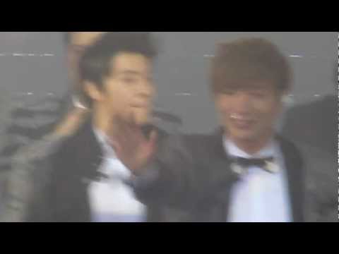 - Hyung, ez az első nagy fellépés, ahol megint mind együtt vagyunk, hogy vagy képes még ilyenkor is a pihenéssel foglalkozni? – torkolta Kangin, Kyuhyun és Yesung pedig helyeslően bólogattak mellette.